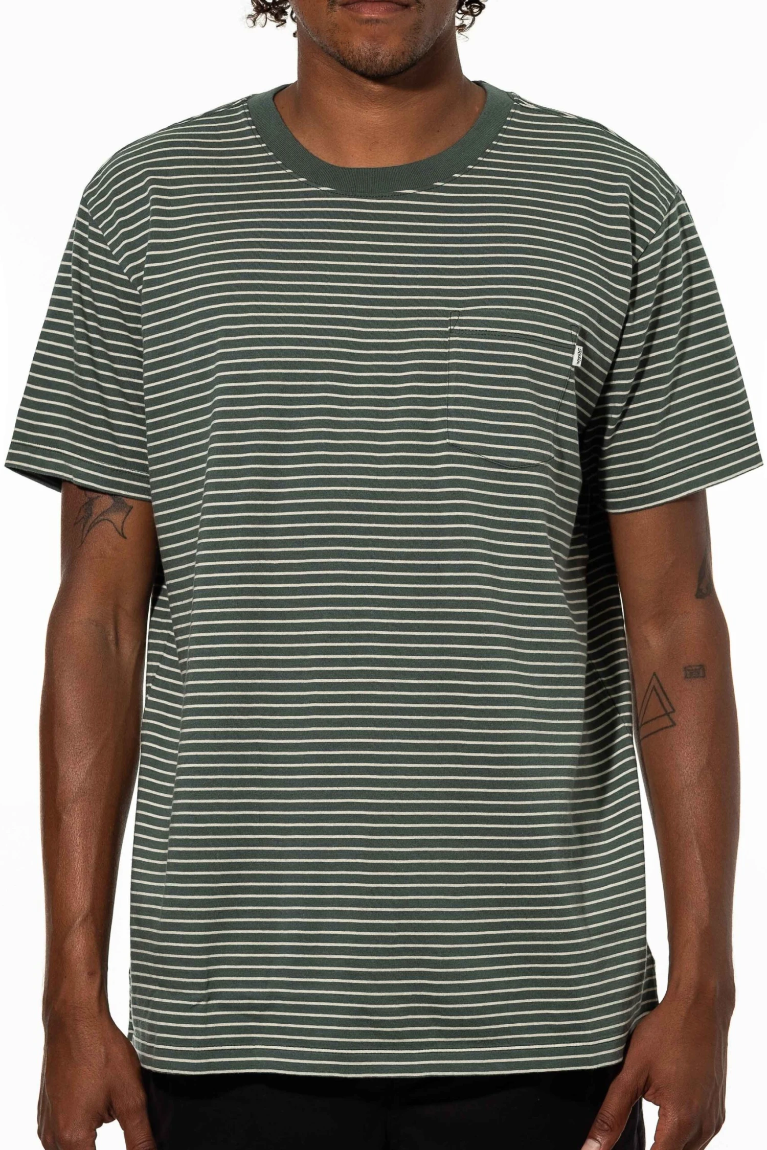 Enzyme-washed, 100% cotton Finley knit is an ultra-soft, vintage-inspired knit tee, offering a classic look and feel with extended comfortability 100% cotton Horizontal stripes / Mens Finley Pocket Tee Shirt in Teal / Medium / 100% Cotton / Katin
