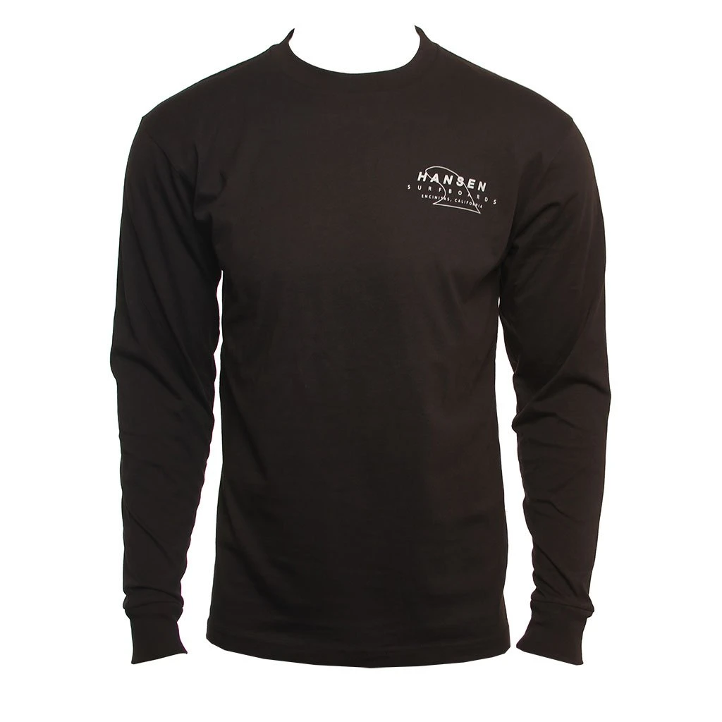 The Hansen Mens Logger Shirt is a 100% Cotton Tee that features a front and back screen print. The fin outline comes from the cover of our 1967 Catalog! / Mens Shirt Logger Long Sleeve in Black / 2xl / 100% Cotton / Hansen