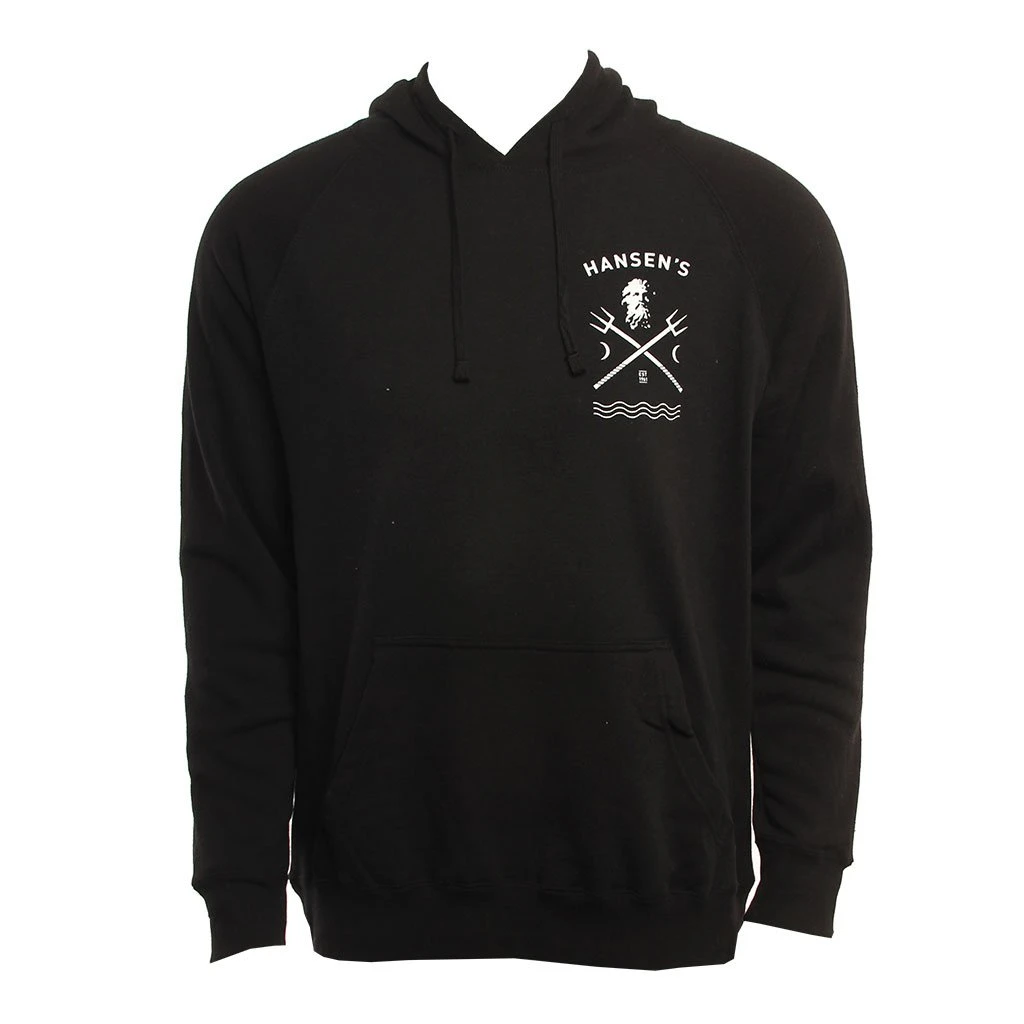 Hansen hooded pullover sweatshirt Small screenprint on left chest, large on back52% polyester 48% cotton / Mens Sweatshirt Neptune Po Hoodie in Black / Medium / Cotton/ Polyester / Hansen
