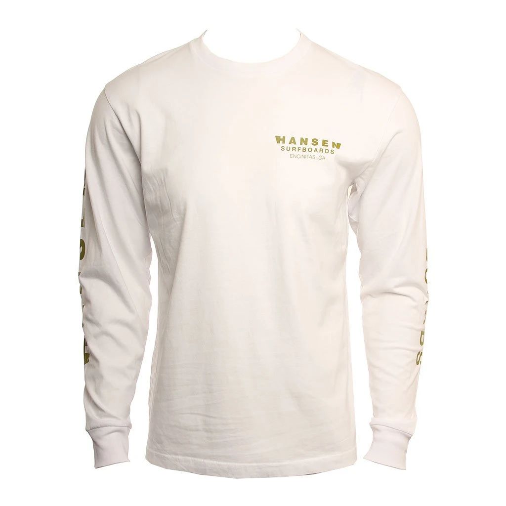 The Hansen Mens Toes Long Sleeve Shirt is a 100 % cotton tee with front and back screen prints. The picture is an iconic photo of Cheer Critchlow shot at Pillbox in Solana Beach. The photo was used in our 1968 Catalog, it is from the same shoot that we used the photo for our Iconic Sign! / Mens Shirt Toes Long Sleeve in White / Small / Cotton / Hansen