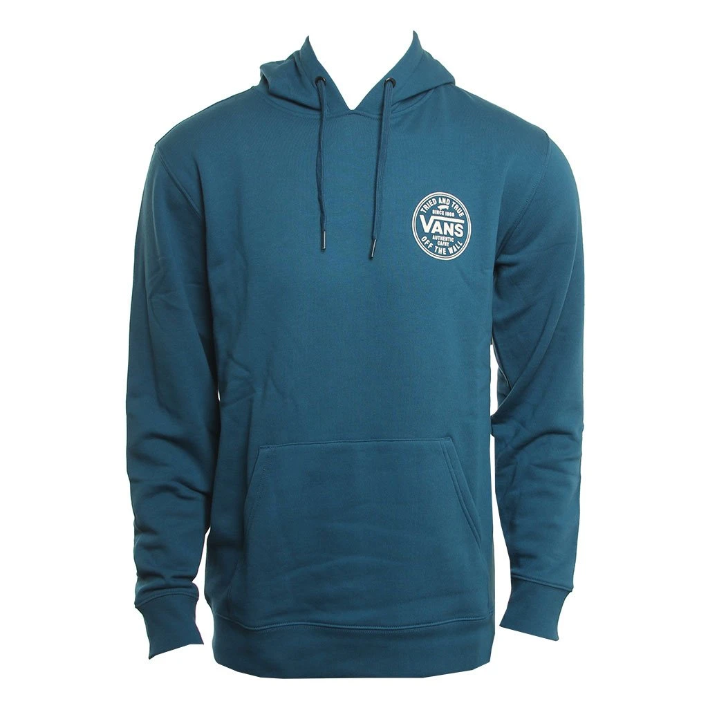 Mens pullover sweatshirt Screenprint on front and back Woven labels Kangaroo pocket60% cotton 40% polyester / Mens Sweatshirt Tried and True in Teal / Large / Cotton/ Polyester / Vans